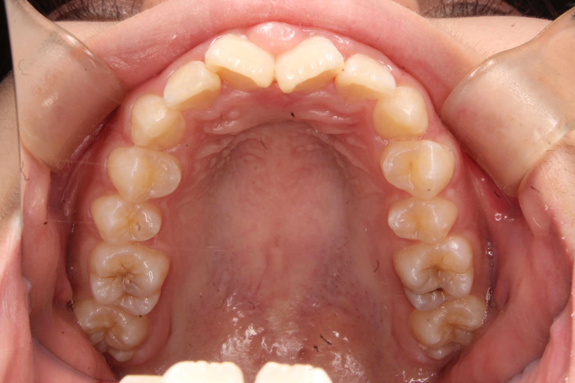 前歯が内側に捻れる原因は、歯が並ぶスペース不足によるものであり、その結果、前歯の見た目が悪くなることがあります。また、翼状捻転は、歯が前に出ていることが多く、さらに目立ってしまうため気になる方が多い歯並びです。