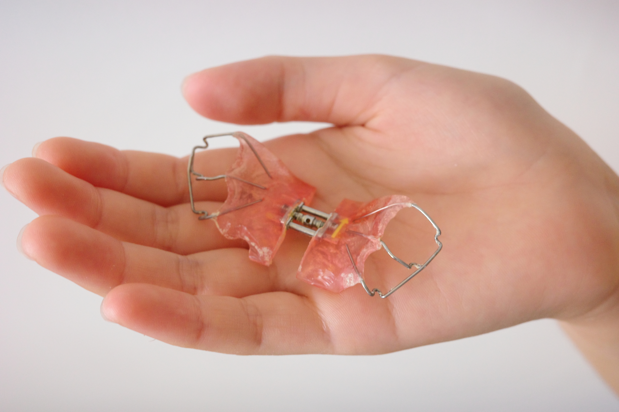 あごの幅が狭いことが原因で交叉咬合になっている場合は、「拡大床」などの装置を併用して顎を広げる治療を行います。