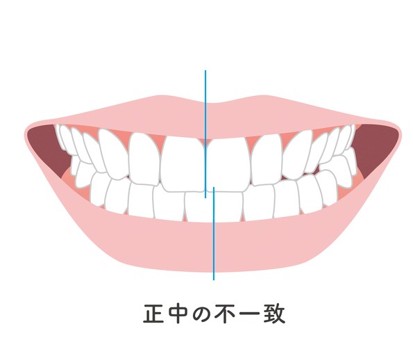 矯正治療を行っても、正中線が合っていない状態になることもあります。これを「正中不一致(せいちゅうふいっち)」といいます。