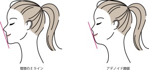 これを 「アデノイド顔貌」と呼び、口呼吸が原因で起こる代表的な症状の一つです。
