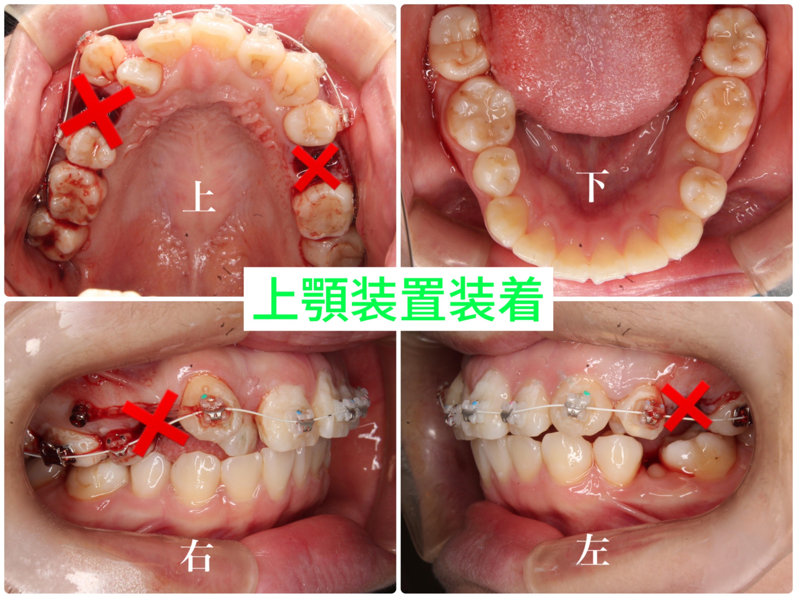 抜歯部位は矯正抜歯4か所、親知らず4か所の計8か所でした。