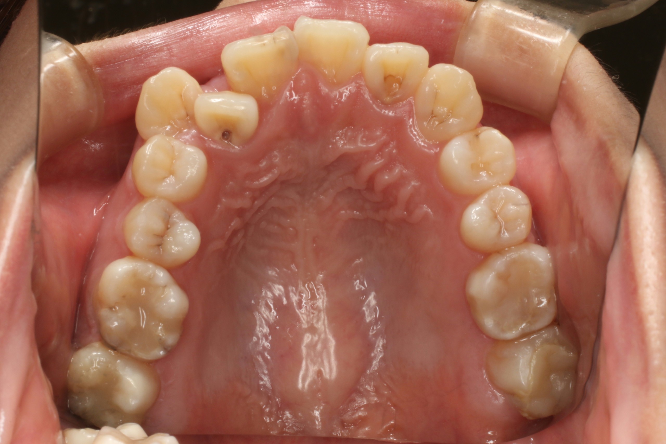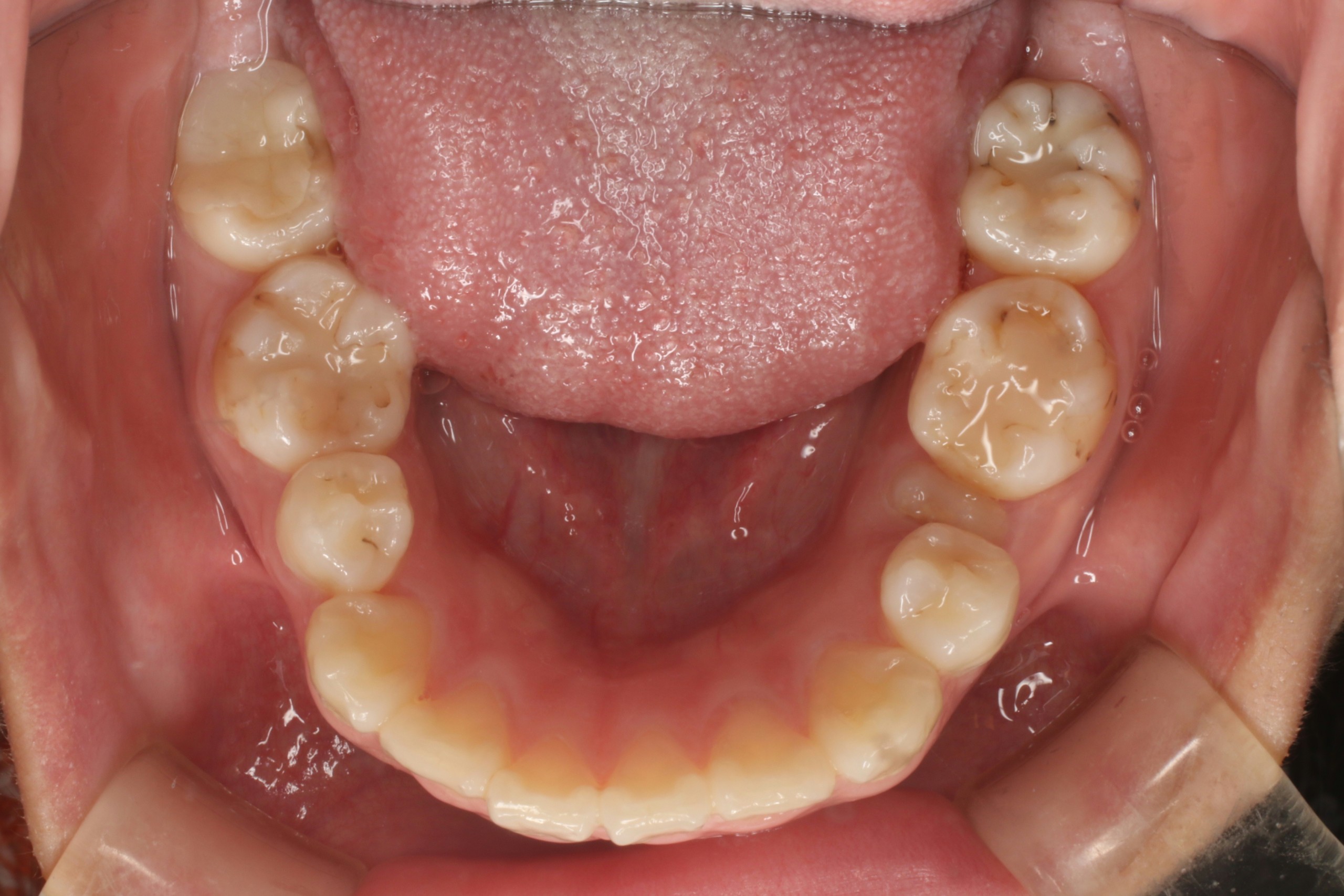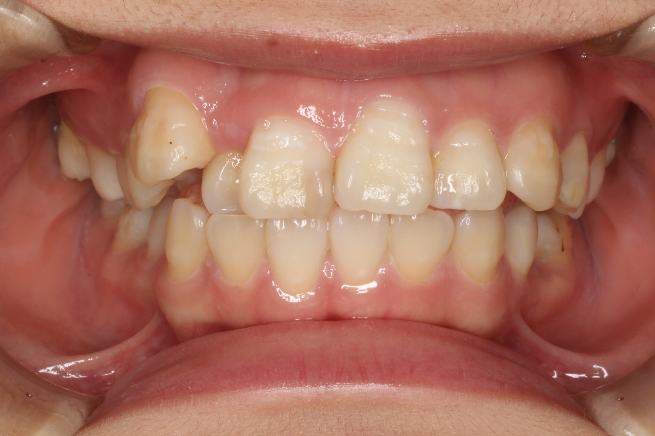 上顎は右側切歯が内側に入り、叢生が確認できます。