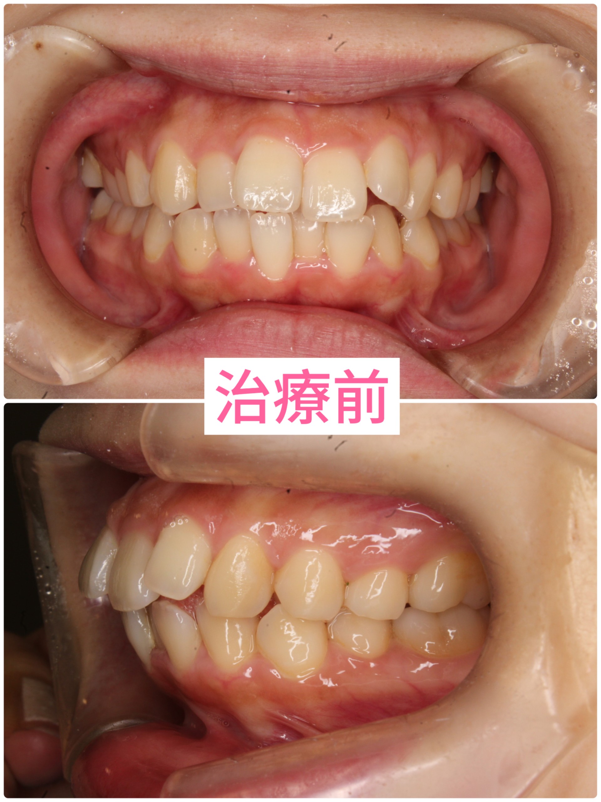 歯並びのガタつきと前歯の傾斜があり、横から見ても口元のふくらみが気になる状態でした。