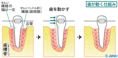 歯は、周りの組織にしっかりと支えられているため、少しの力がかかっただけでは動きません。