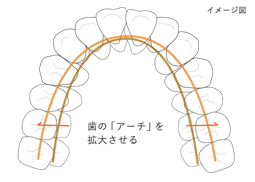 歯が並んでいるアーチの部分を、前方や側方などの方向に広げてスペースを作ります。顎そのものではなく歯が並んでいる歯列の幅を広げるため、顔が大きくなるといったことはありません。