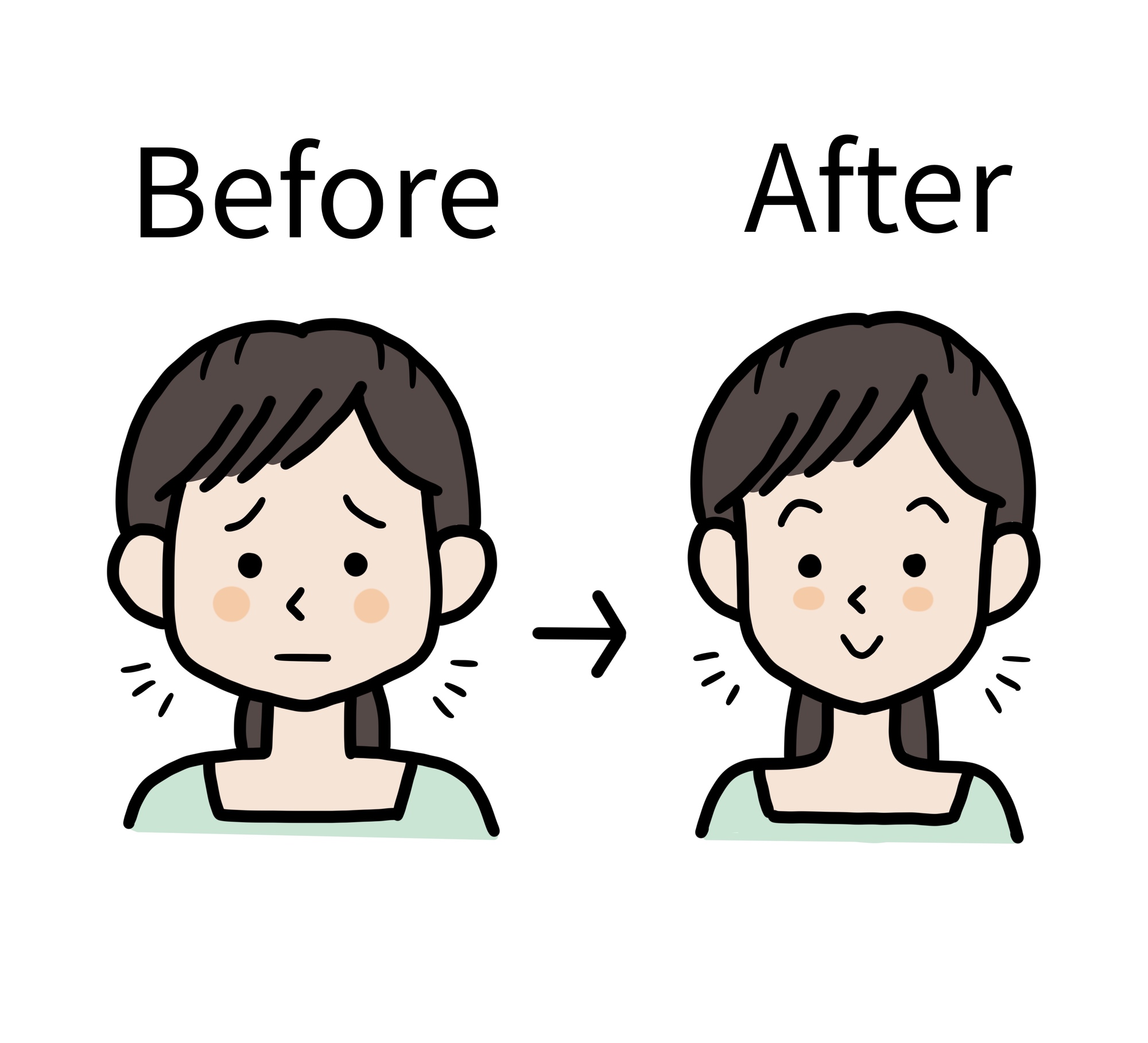 直接的にエラの変化に繋がるわけではなく、かみ合わせが改善するとそれに伴い顔のバランスが整いやすくなります。