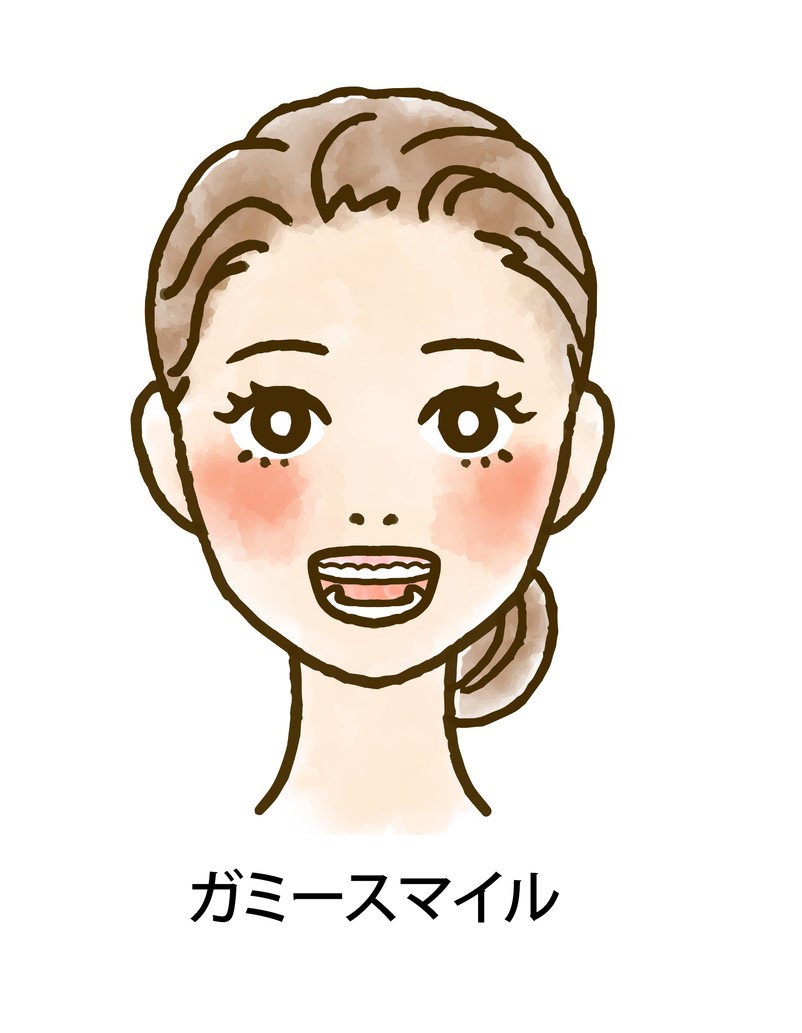 笑ったときに、上唇が上がり過ぎている方は「ガミースマイル」になります。