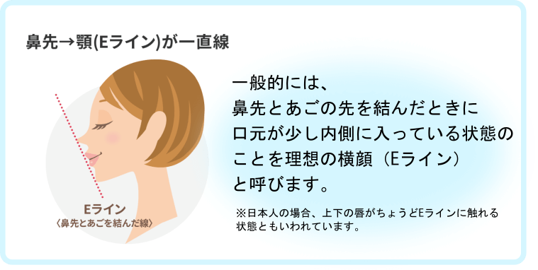 Eラインは、鼻先と顎の先端を結んだラインのことで、美しい横顔を語るうえで欠かせない 基準です。