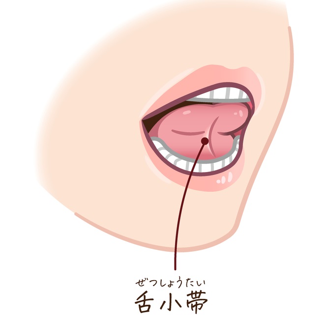 舌小帯とは舌の裏側にあり、舌と口の底の部分を繋ぐヒダ状の筋のことです。あまり見ることのない場所だと思いますが、舌小帯が短いと舌の動きを狭めてしまうことがあります。