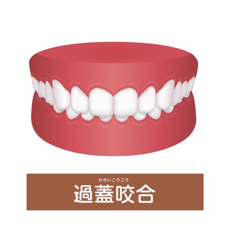 上下のかみ合わせが通常よりも深く、下の歯を覆い隠しているような状態のことを指し、「ディープバイト」とも呼ばれています。