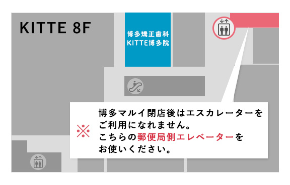 ※院内にお手洗いはございません。そのため、KITTE博多館内のお手洗いをご案内しております。