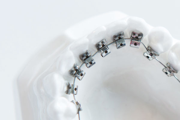 歯にブラケットと呼ばれる小さな矯正装置をつけ、そこにワイヤーを通し、ワイヤーの力で歯を動かしていく方法。