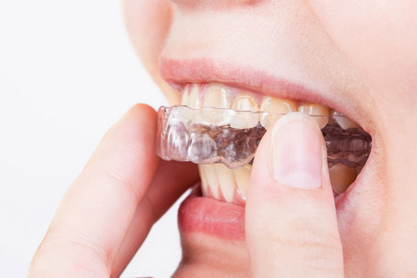 透明なプラスチックのマウスピースを歯列にはめる矯正方法。患者さまで取り外しが可能。