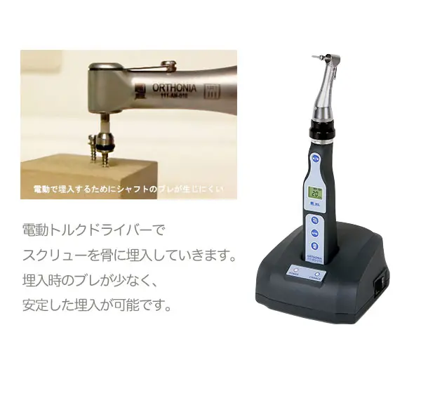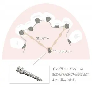 ガミースマイルの改善は以前では外科矯正に頼らざるをえませんでした。 けれども、インプラントアンカーの登場で歯列を大きく動かせるようになり、矯正治療でガミースマイルの治療ができるようになりました。 インプラントアンカーとは、歯科用の小さなチタン製のネジです。 失った歯の代わりに導入する人工歯と矯正用のインプラントアンカーは異なります。 インプラントアンカーは矯正治療の期間だけ口腔内に設置し、歯を動かす際の支点の役割を果たします。