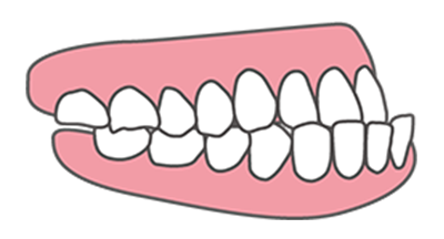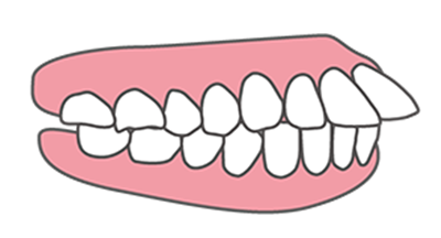 下の前歯部分や顎が前方に突出した歯並びがみられます。