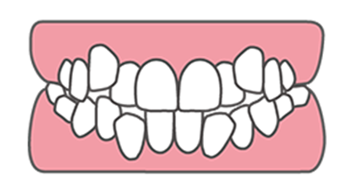 歯並びが全体的に乱れており、八重歯も含まれます。
