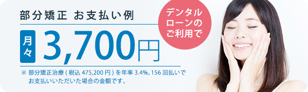 | 部分矯正(リンガル矯正)必要最小限な治療で、美しい歯並びを目指します。 | 452,000円 (税込497,200円) |